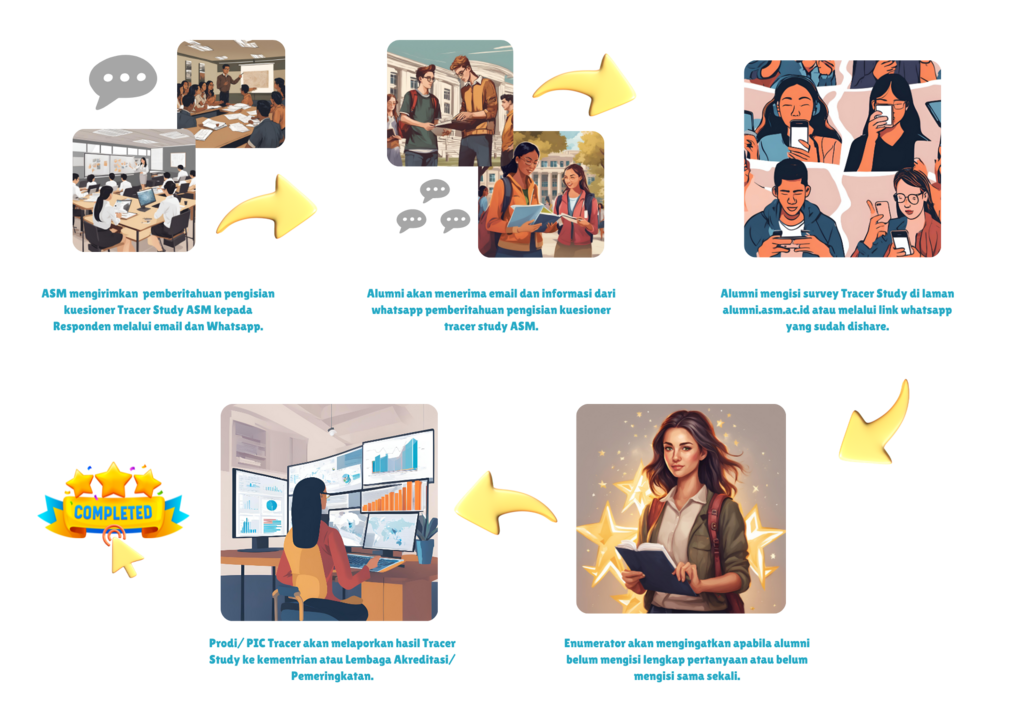 Tracer Study ASM merupakan survei yang dilakukan untuk mengevaluasi dan menyempurnakan proses penyelenggaraan dan sistem pendidikan di ASM. Hasil Tracer Study ASM akan menjadi data yang berharga bagi ASM dan diperlukan untuk berbagai kebutuhan pengembangan dan kemajuan ASM.